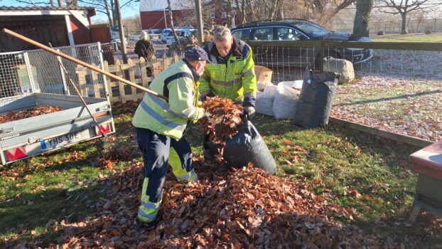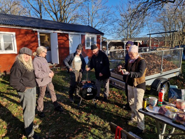 Lövet räfsades ihop och kördes bort, bipaviljongen städades. Till lunch blev det korv med bröd i det fina höstvädret.